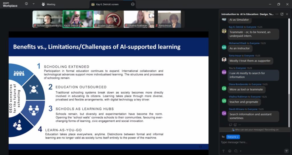 Навчання триватиме з 07 квітня по 19 травня 2026 року та спрямоване на формування сучасних компетентностей у сфері використання штучного інтелекту в освітньому процесі. У межах курсу учасники ознайомляться з підходами до проєктування освітнього середовища з використанням AI, особливостями викладання та оцінювання із застосуванням інтелектуальних технологій.